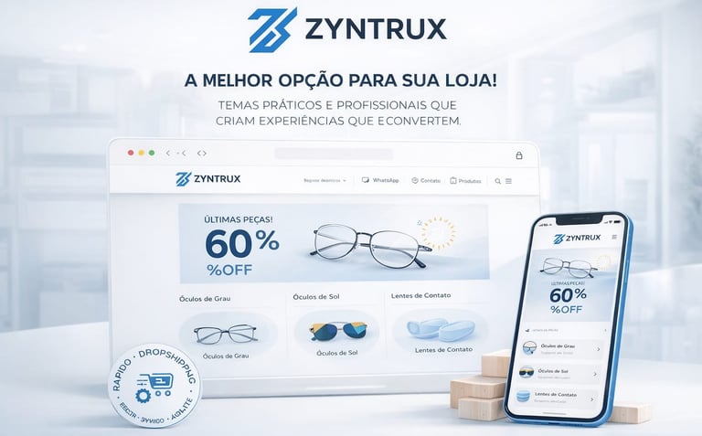 Loja virtual minimalista para ótica, com navegação simples e checkout rápido, aumentando vendas locais.